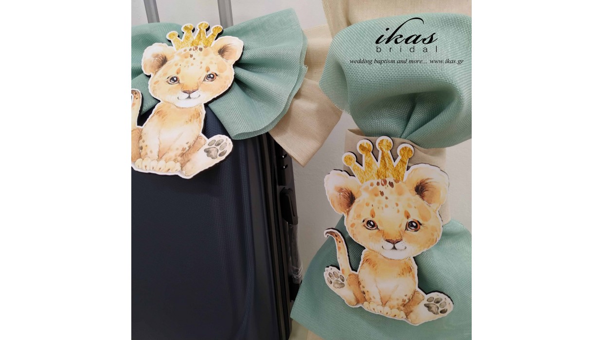 Χειροποίητο πακέτο βάπτισης για αγόρι με θέμα λιονταράκι με στέμμα, για μια βάπτιση με το λιοντάρι, τον αρχηγό των ζώων. Υπέροχο πακέτο βάπτισης με θέμα lion king. Τροχήλατη μπλε βαλίτσα στολισμένη με φιόγκους από άμμου και μέντας ύφασμα και ξύλινο διακοσμητικό λιοντάρι. Λαμπάδα βάπτισης στολισμένη με φιόγκους από άμμου και μέντας ύφασμα και ξύλινο διακοσμητικό με το λιοντάρι. Μπουκαλάκι λαδιού στολισμένο με άμμου και μέντας ύφασμα. Σαπουνάκι τυλιγμένο σε πουγκάκι. Στα "προϊόντα πακέτου βάπτισης" διαλέξτε τα προϊόντα που επιθυμείτε. Για δημιουργία διαφορετικού θέματος, αλλαγή στα χρώματα ή αλλαγή στην ημερομηνία παράδοσης επικοινωνήστε μαζί μας για να δούμε αν μπορούμε να ανταπεξέλθουμε.