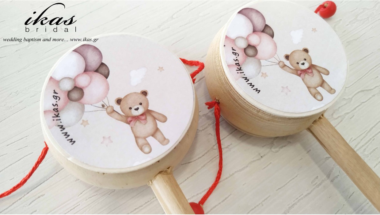 Τυμπανάκι με decoupage χαρτονάκι αρκουδάκι. Εάν επιθυμείτε decoupage του θέματος και από τις δύο πλευρές κάντε τσεκ στις επιλογές decoupage. Ένα πρωτότυπο ξύλινο παιχνίδι για αναμνηστικό παιδικού πάρτυ. Η αρχική τιμή αφορά το προϊόν χωρίς κουφέτα, τούλι και κορδέλες. Μπορεί να συνδυαστεί με άσπρο τουλάκι, ιβουάρ και άσπρη κορδέλα και κουφέτα Χατζηγιαννάκη και να γίνει μια εντυπωσιακή μπομπονιέρα βάπτισης. Σε αυτή την περίπτωση κάντε τσεκ το αντίστοιχο κουτάκι στις επιλογές μπομπονιέρας (οι μπομπονιέρες θα σας αποσταλούν δεμένες). Αν επιθυμείτε διαφορετικά χρώματα στην κορδέλα ή στο τουλάκι συμπληρώστε τα χρώματα που θέλετε στο πεδίο σχόλια. Για δημιουργία διαφορετικού θέματος, αλλαγή στη γεύση του κουφέτου ή αλλαγή στην ημερομηνία παράδοσης επικοινωνήστε μαζί μας για να δούμε αν μπορούμε να ανταπεξέλθουμε.